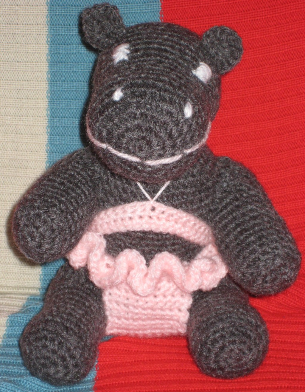 El patrón es Heather the Hippo de Lion Brand Yarn.