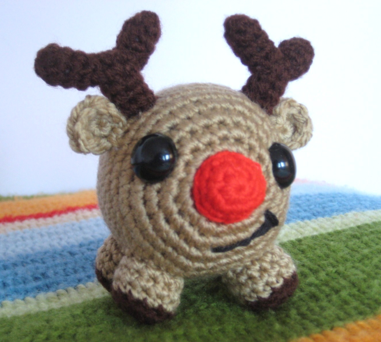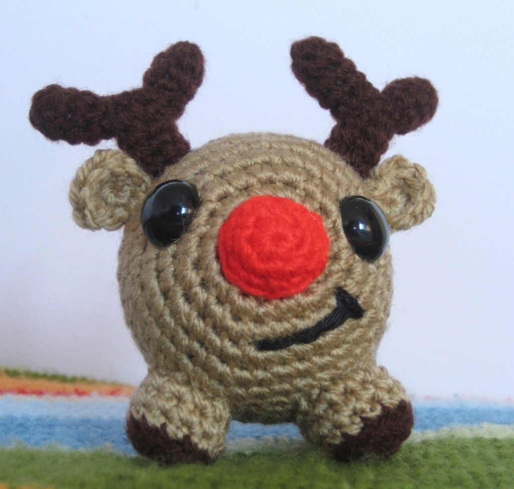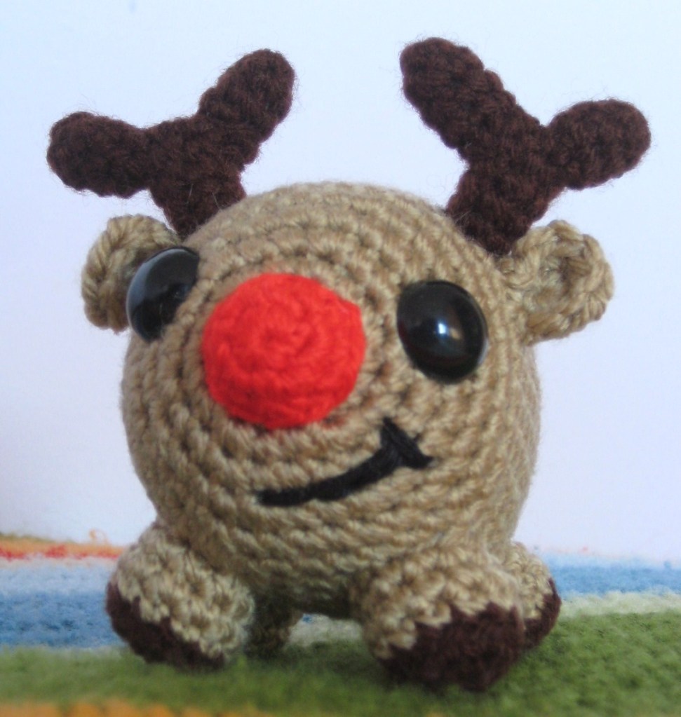 Usé el patrón Happy Reindeer by Lion Brand Yarn. Es muy fácil y rápido de hacer. Le puse ojos de 15 mm., que quedan muy lindos en amigurumi, más que los ojos más pequeños. Las medias-sonrisas también se ganan los corazones.