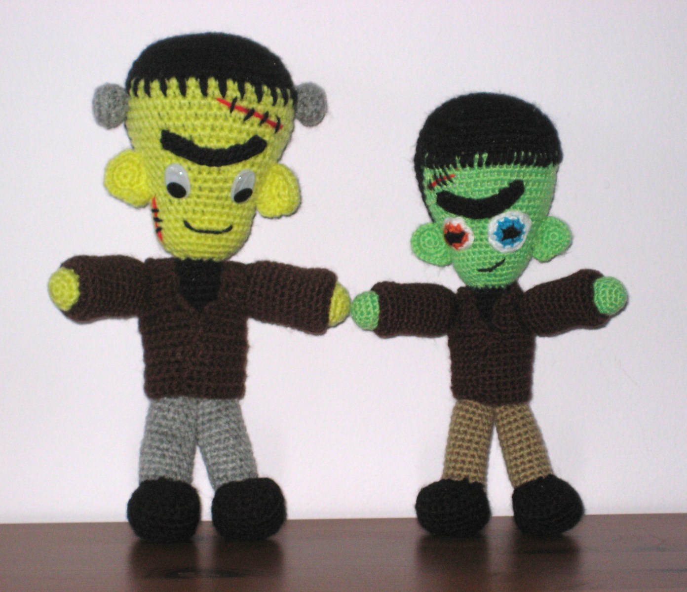 Ahora he hecho una segunda versión (Frankyuss, porque va de regalo para un fan de Kyuss) y ha vuelto a resultar un muñeco chulísimo. A este no le he puesto tornillos en la cabeza (que fue algo que añadí al primero por mi cuenta, pues no venían en el patrón), y esta vez sí le hice ojos de colores diferentes, lo que le da chispa.