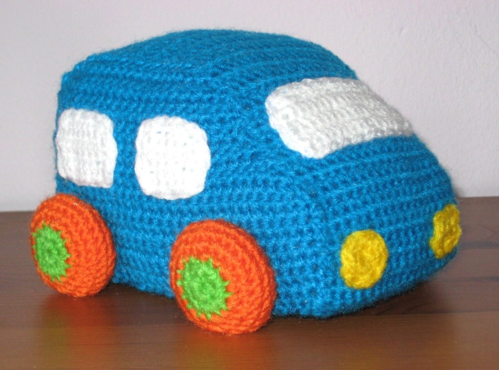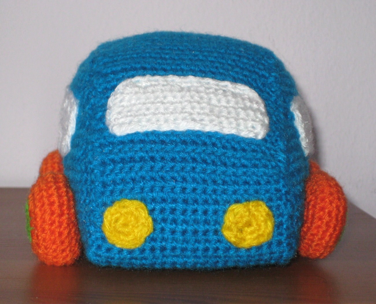 Un pequeño coche de juguete, según el patrón Crochet Toy Car by Julienne M. (Ravelry).