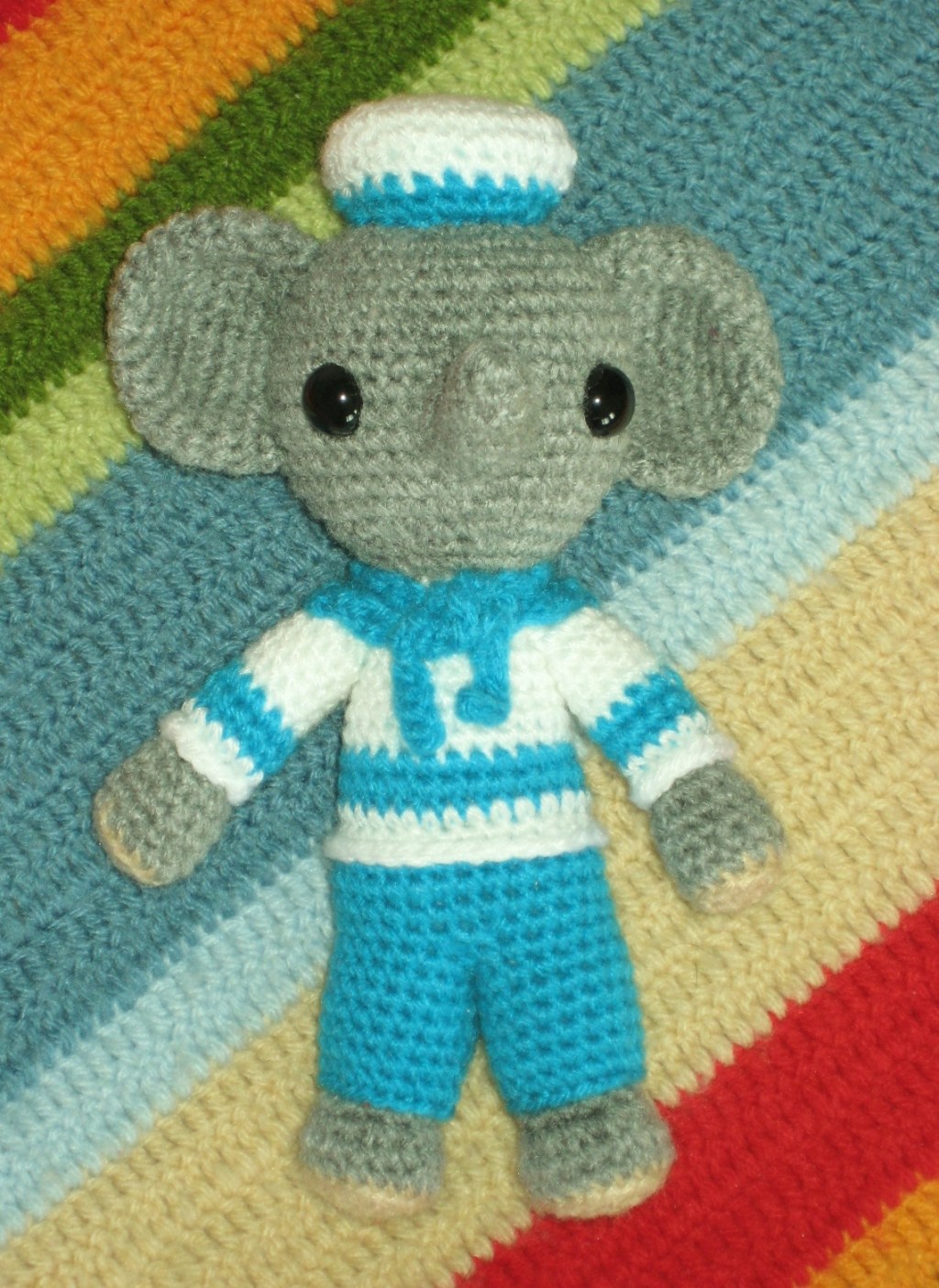 El patrón es Elefante marinaio (Sailor elephant) de Laura Ballarin, disponible en italiano e inglés. (Aquí en Ravelry).