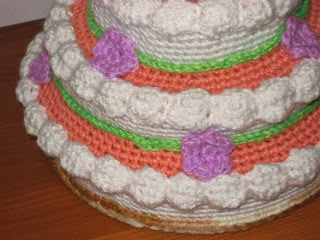 La tarta es sencilla; pueden seguir este patrón Birthday Cake Secret Box de MoonSc (aquí en Ravelry) y adaptarlo al tamaño que deseen.