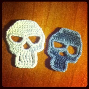 Los apliques de calavera están hechon con el patrón SKULLS!! de Robin Brzozowski (aquí en Ravelry).