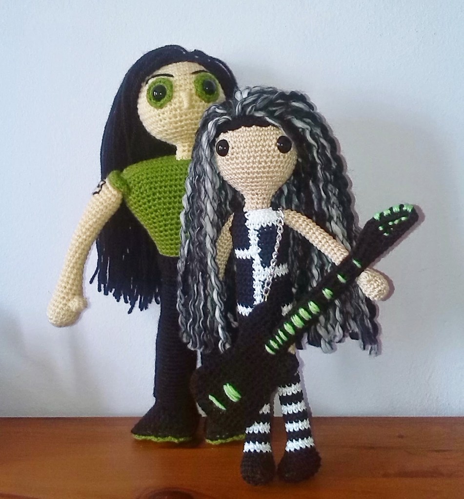 Estas son las primeras muñecas que he terminado, y todavía tengo colores pendientes de usar. Terminarán formando una Riot Grrrls Band, de hecho la muñeca en blanco y negro ya se ha apropiado del bajo de Peter Steele (y él no se ha quejado…).