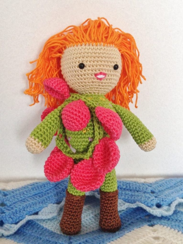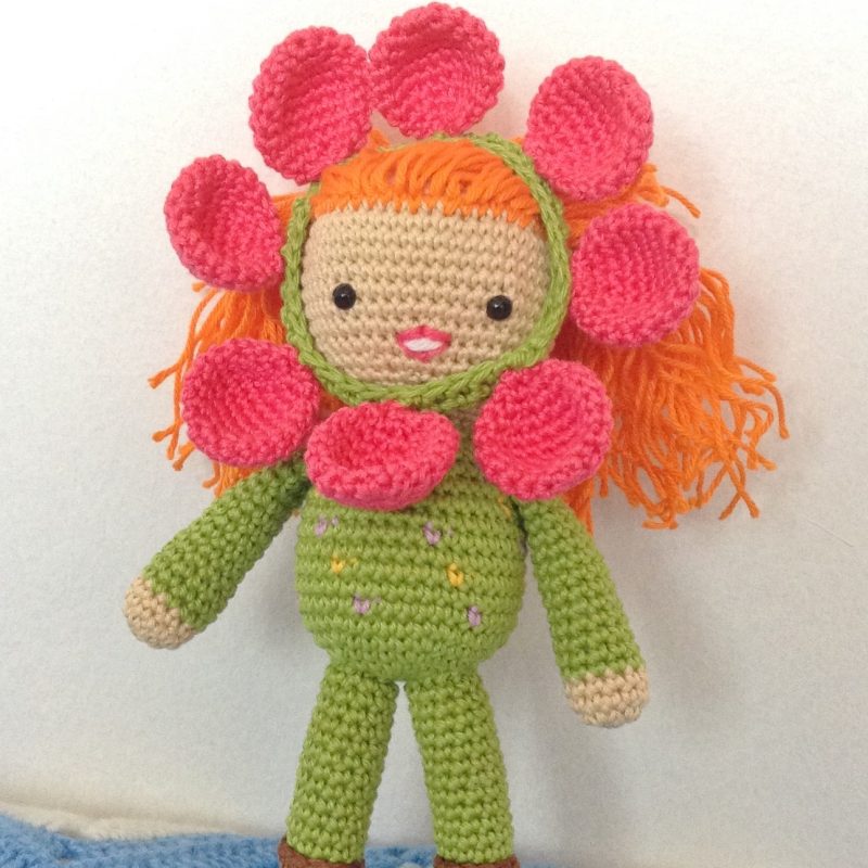 Esta en la segunda muñeca que hago de las incluidas en el libro Muñecas de Amigurumi de Lalala Toys. Dorothy, una linda flor de primavera.