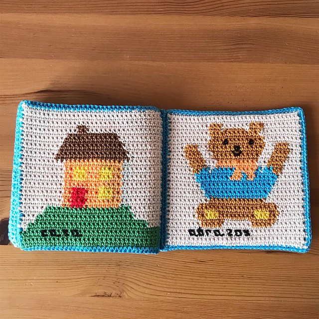 Este es un diseño de The Almond Snug (Etsy / Ravelry) y me enamoré de él en cuanto lo vi. Creo que es una idea buenísima lo de hacer un libro para los más pequeños.