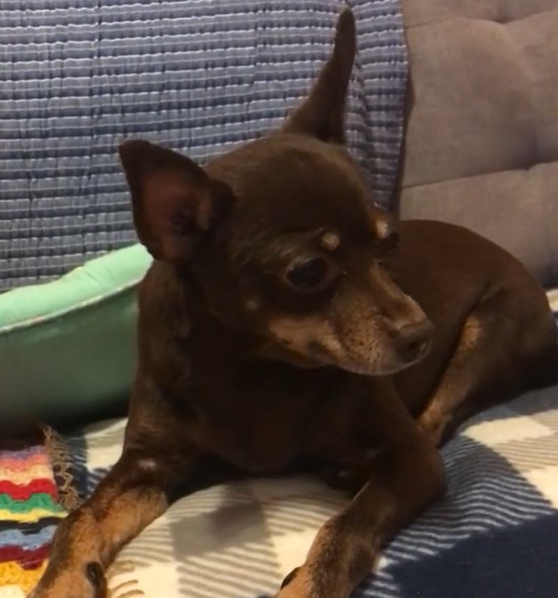 En enero los Reyes Magos le dejaron un regalo a Trufa, un abrigo de lo más chic. Trufa es una pinscher mini, es un amor, y es imposible hacerle una buena foto porque nunca para quieta y la cámara le pone muy nerviosa. Creo que la artesana a la que los Reyes le encargaron el abrigo usó este patrón como base: https://www.ravelry.com/patterns/library/dog-coat-13
