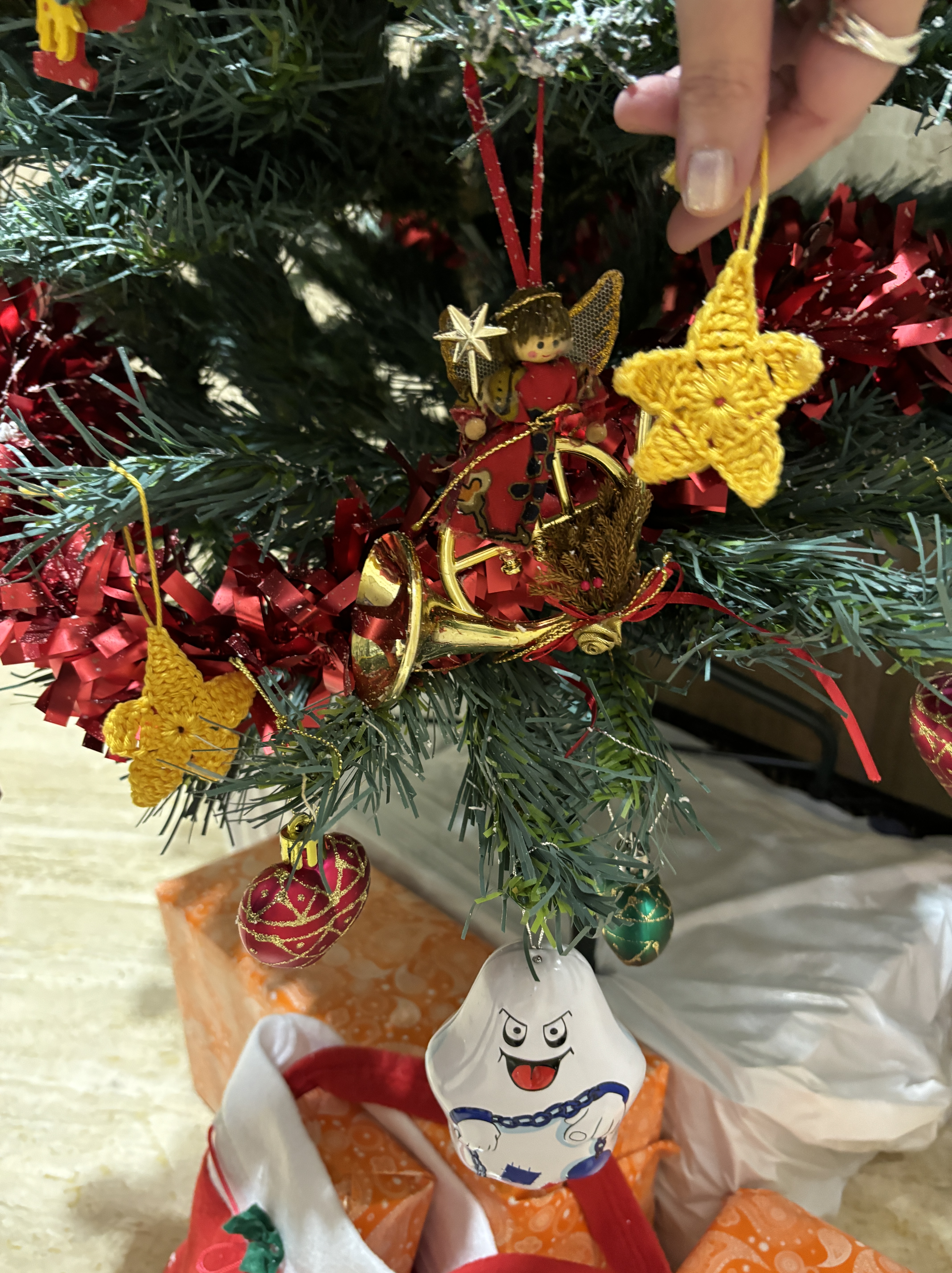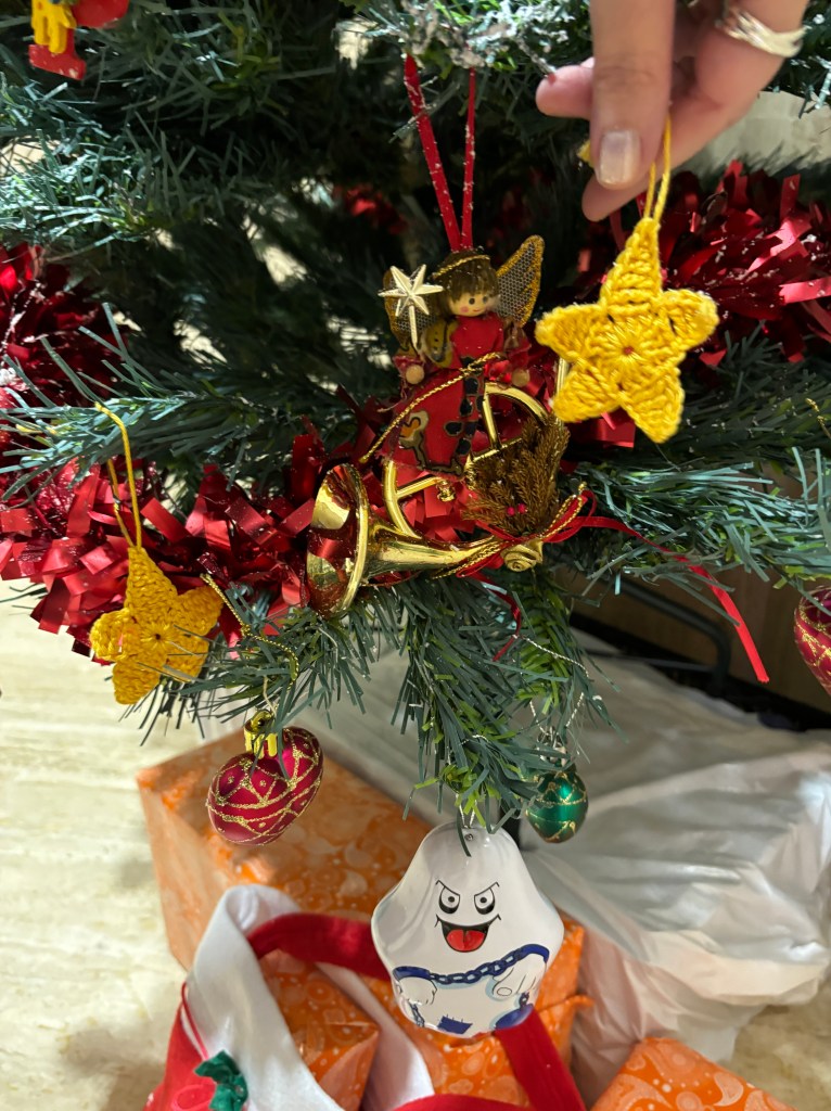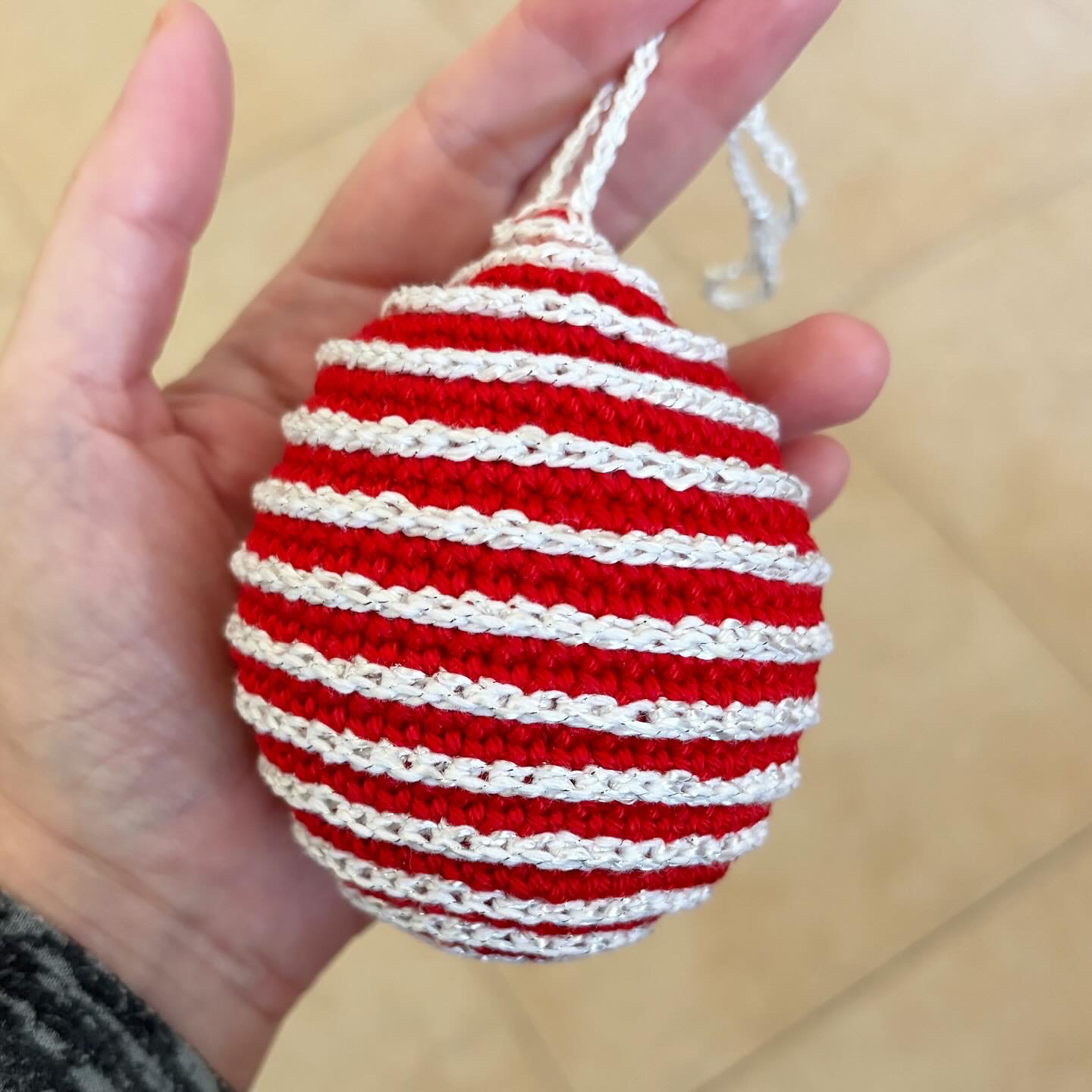 La bola de navidad es un diseño improvisado, cubriendo también un huevo de poliestireno.